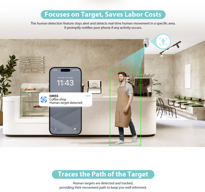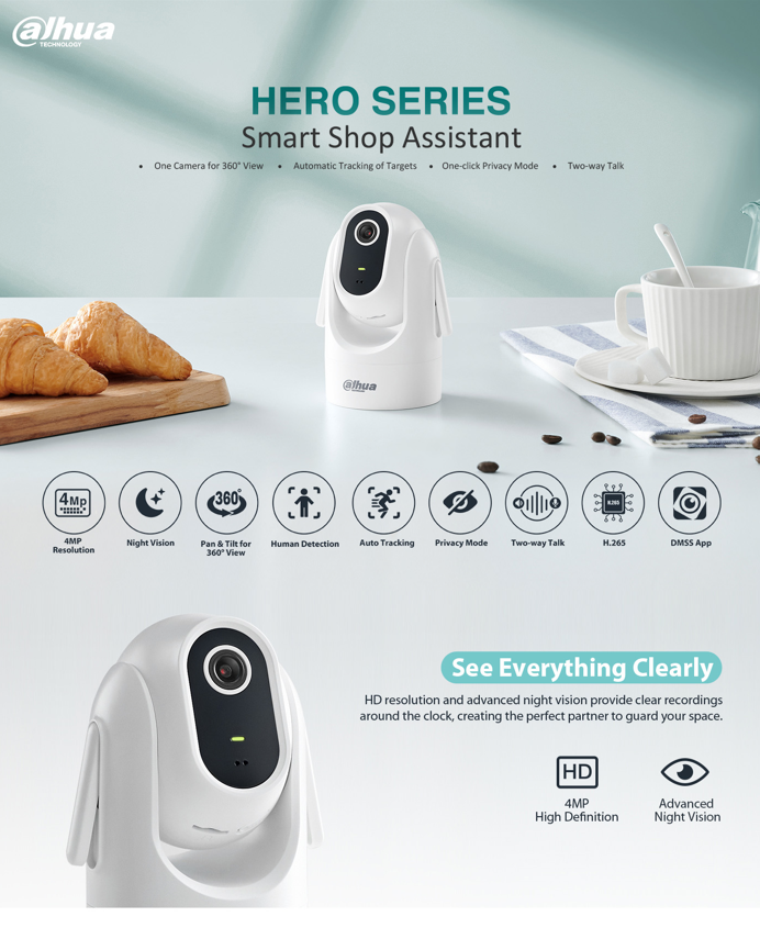 Hero býður upp á auto tracking sem kveikt er á í DMSS appinu, þá eltir hún t.d. innbrotsþjófa eða aðra sem eiga leið framhjá sjónsviði.